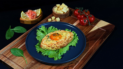 По окончании программы сыр примять вилкой и аккуратно выложить желток.