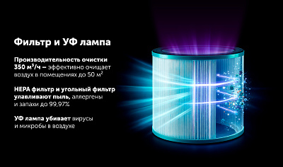 CADR 350 м3/ч.