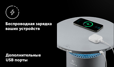 Встроенная беспроводная зарядка для устройств.