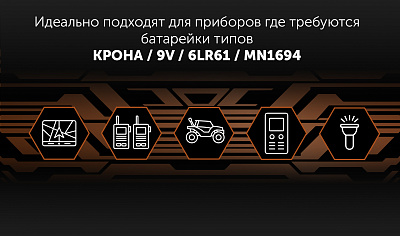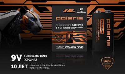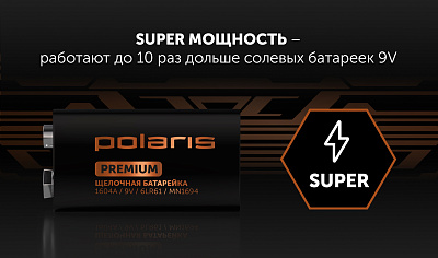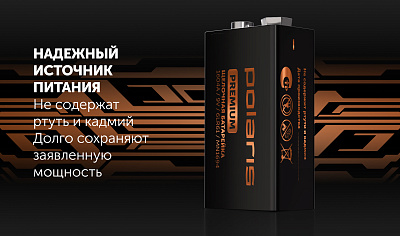 Батарейки щелочные Polaris PB 9V (6LR61) (1шт) Premium