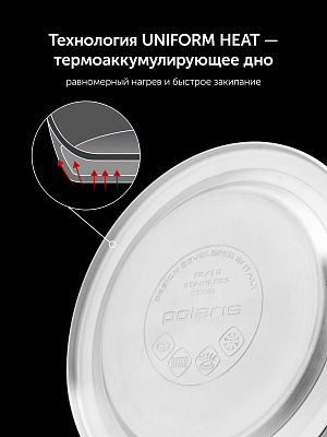 Технология Uniform Heat - термоаккумулирующее дно обеспечивает равномерный нагрев и быстрое закипание.