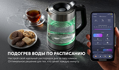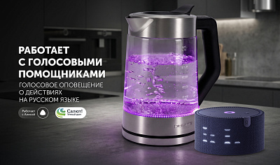 Чайник работает с голосовыми помощниками Алиса и Салют любого типа, в том числе и через загруженные в телефон приложения.