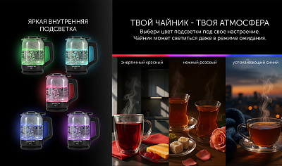 Яркая внутренняя подсветка - 5 цветов, цвет фиксируется взависимости от выбранной температуры.