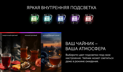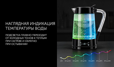 Технология Smart Color – цвет подсветки как индикатор текущей температуры воды в чайнике