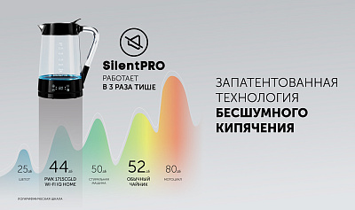 Запатентованная технология Silent Pro – работает в 3 раза тише других чайников