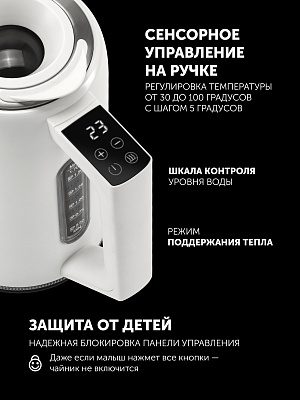 Купили чайник с возможностью удаленного управления и контроля. В приложении ай кью хоум от поларис я могу сама включить и выключить его, настроить необходимую температуру и поставить режим поддержания выбранной температуры. Это же можно сделать и на самом чанике. Сам по себе чайник крепкий, смотрится симпатично, достаточно лаконичный, пришелся по душе верхний залив через отверстие в крышке, удобно