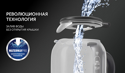 Запатентованная технология залива воды “WATERWAY PRO”- наливайте воду в чайник, не открывая крышку.