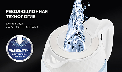 Новая запатентованная технология "Waterway Pro" для удобного верхнего залива воды в чайник.