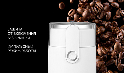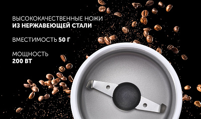 Кофемолка оснащена высококачественными ножами из нержавеющей стали. Мощность 200 Вт позволяет быстро перемолоть необходимое количество зерна. Безопасность работы прибора обеспечивает функция блокировки при снятой крышке.