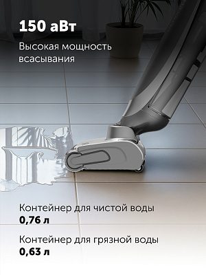 - 2 в 1 пылесосит, моет и собирает жидкость.