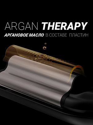 Argan Therapy – пластины обогащены Аргановым маслом. При нагреве волосы становятся восприимчивы к внешнему воздействию и Аргановое масло внедряется в структуру волос, позволяя им оставаться здоровыми и приобрести естественный блеск.