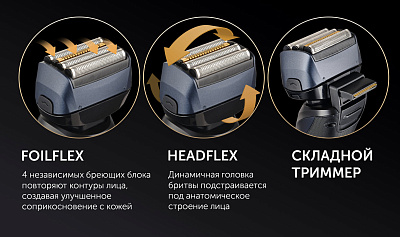 FoilFlex - 4 независимых бреющих блоков повторяют контуры лица, создавая улучшенное соприкосновение с кожей.