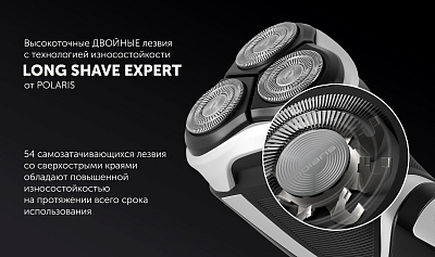 Высокоточные двойные лезвия с технологией износостойкости Long Shave Expert от Polaris.