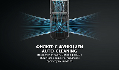 Фильтр с функцией AUTO-CLEANING позволяет очищать мотор в режиме обратного вращения, продлевая срок службы мотора.