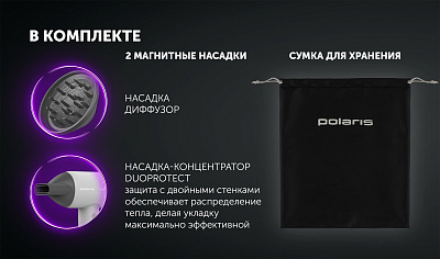 Фен с бесщеточным Digital мотором последнего поколения обеспечивает эффективность сушки мощностью 2400W со скоростью мотора 115 000 об/мин. при минимальном уровне шума 55 ДБ.