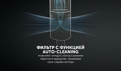 Фильтр с функцией AUTO-CLEANING позволяет очищать мотор в режиме обратного вращения, продлевая срок службы мотора.