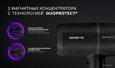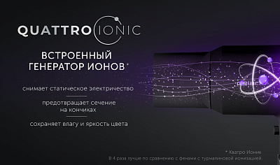 Встроенный генератор ионов QUATTRO Ionic создает 4D эффект здоровых волос - работает как антистатик, увлажняет, сохраняет яркость цвета, предотвращает сечение на кончиках.