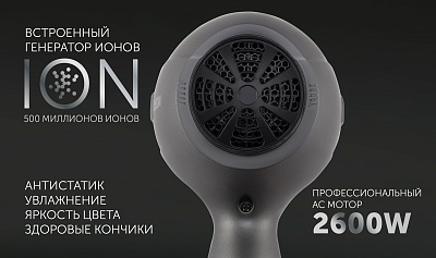 Встроенный генератор ионов работает как антистатик, увлажняет, сохраняет яркость цвета, предотвращает сечение на кончиках.