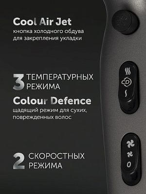 Режим Colour Defence - щадящий режим сушки бережно сушит сухие, поврежденные волосы; сохраняет насыщенный цвет и сияние