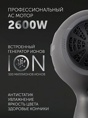 Профессиональный АС мотор увеличивает срок службы фена и создает мощный поток воздуха для быстрого результата сушки.