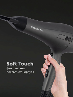Полноценный мощный фен с мягким покрытием корпуса Soft Touch.