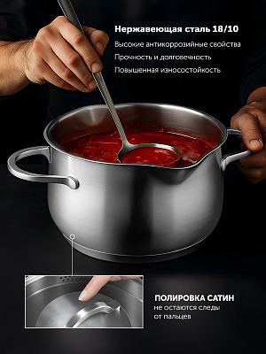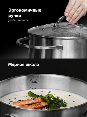 Ручки – удобные удлиненные ручки из нержавеющей стали, можно мыть в посудомочной машине.