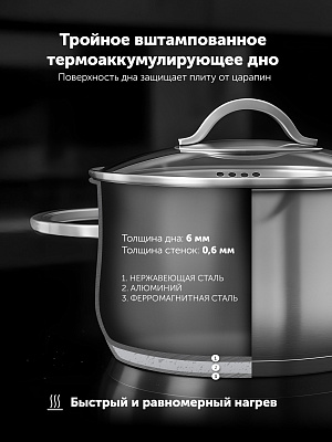 Технология Impact - тройное вштампованное термоаккумулирующее дно с прослойкой из алюминия.