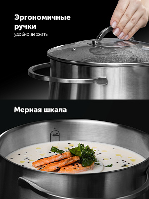 Ручки – удобные удлиненные ручки из нержавеющей стали, можно мыть в посудомочной машине.