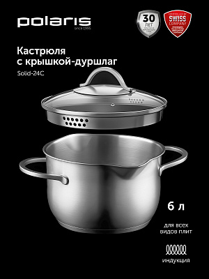 Крышка из жаропрочного стекла с отверстием для выпуска пара и специальным широким металлическим ободом с отверстиями для удобного слива жидкости.