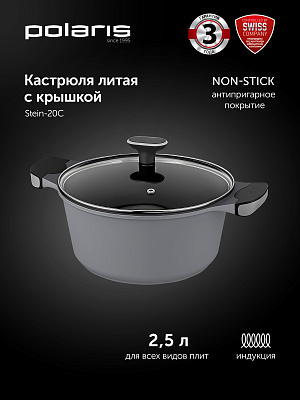 Кастрюля литая с антипригарным покрытием Stein-20C с крышкой.