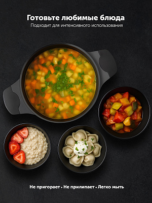 Эргономичные ручки с покрытием "Soft Touch" не скользят в руке и не нагреваются в процессе приготовления.