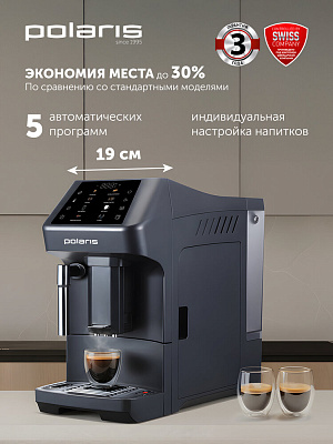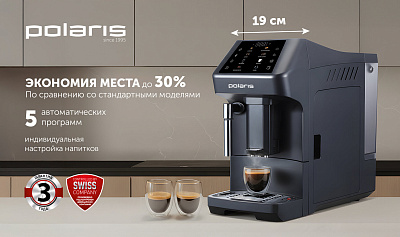Компактная кофемашина шириной всего 19 см с большим сенсорным дисплеем и традиционным капучинатором.