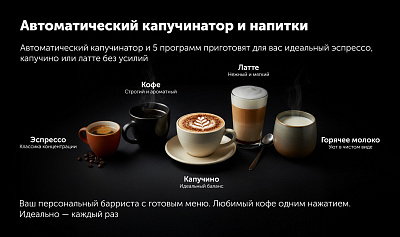 | Виды напитков | эспрессо,двойной эспрессо,капучино,латте |