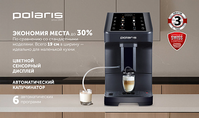 Суперкомпактная (19 см) кофемашина с автоматическим капучинатором и сенсорным дисплеем.