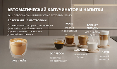 Индивидуальные настройки и автоматический капучинатор помогут вам создать идеальный напиток по вашему вкусу.