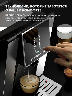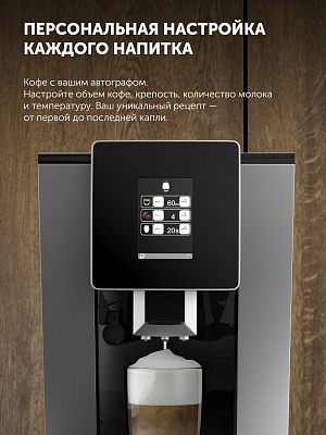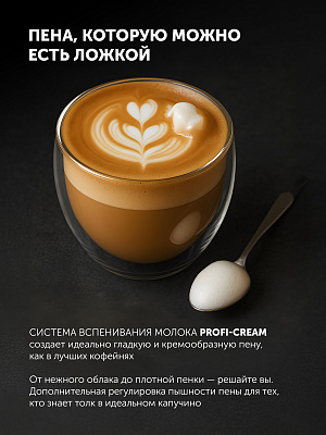 Кофемашина оснащена уникальной системой вспенивания молока Profi-cream, что позволяет готовить неповторимую молочную пену кремообразной консистенции. В данной модели предустановлено 6 автоматических программ: эспрессо, кофе, капучино, латте, горячее молоко и горячая вода. Каждую из этих программ пользователь может настроить индивидуально исходя из своих вкусовых предпочтений. Благодаря помпе итальянского производства с давлением 20 бар, кофемашина варит насыщенный эспрессо с превосходной кофейной пенкой. А цветной сенсорный дисплей с интуитивно понятным интерфейсом позволит приготовить любимый напиток всего одним касанием.