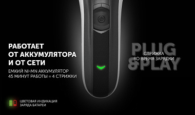 45 мин работы от аккумулятора: достаточно на несколько стрижек.