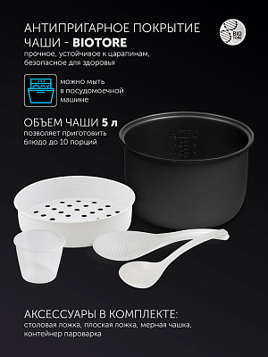 Антипригарное покрытие внутренней чаши - прочное, устойчивое к царапинам, безопасное для здоровья.