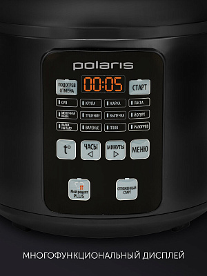 Режимы работы: Мой рецепт Plus, Суп, Крупа, Жарка, Паста, Молочная каша, Тушение, Выпечка, Йогурт, Варка на пару, Варенье, Плов, Разогрев.