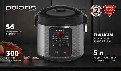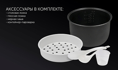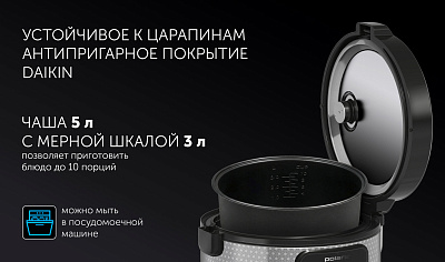 Объем чаши позволяет приготовить блюдо до 10 порций.