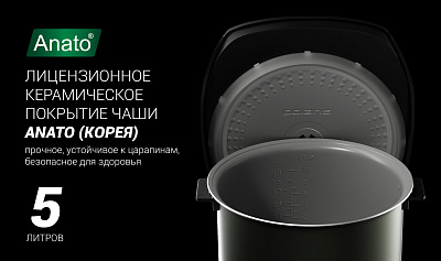 Чаша с керамическим покрытием Anato (Корея) с удобными ручками - 5 л.