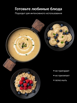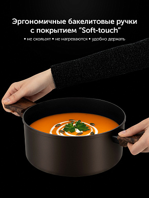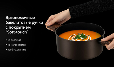 Эргономичная ручка с покрытием "Soft Touch" не скользит в руке и не нагревается в процессе приготовления.