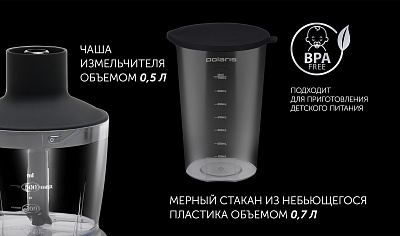 Погружной блендер Polaris PHB 1385 – компактный и многофункциональный прибор 3 в 1: измельчитель, миксер, блендер. Плавная регулировка скорости и режим Турбо. Технология PROtect+ двойная защита двигателя (от перегрева и перегрузки) обеспечивает надежность и долговечность. Мощность 1350 Вт. Ножи блендера PRO Blade особой формы из нержавеющей стали обеспечивают эффективное измельчение и смешивание. Низкий уровень шума. Насадка блендера и венчик из нержавеющей стали.Чаша измельчителя объемом 0,5 л. Мерный стакан (BPA free) объемом 0,7 л с крышкой в комплекте. Удобен в применении и очистке. Гарантия 2 года.