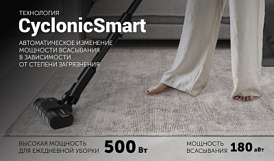 Технология Cyclonic Smart – автоматическое изменение мощности всасывания в зависимости от степени загрязнения в режиме «авто»