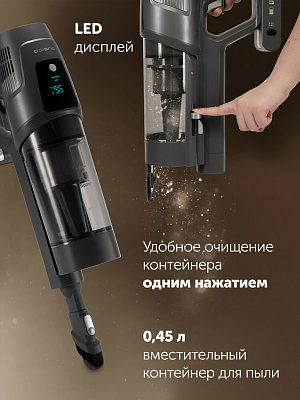 Универсальный аккумуляторный пылесос также оснащен LED дисплеем с удобным индикатором заряда, чтобы вы всегда знали, когда устройство нуждается в подзарядке. Уровень шума составляет всего 83 дБ.