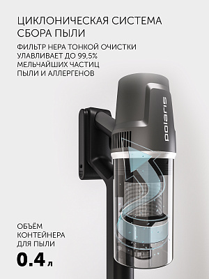 Беспроводной вертикальный пылесос с турбощеткой и 4 дополнительными насадками станет верным помощником в заботе о доме. Он легко превращается в компактный ручной пылесос, а при помощи сгибающейся трубы он легко достанет до самых труднодоступных мест. Моющая насадка поможет освежить полы после сухой уборки или же убрать локальные загрязнения на полу в прихожей или на кухне. Мощной инвенторный мотор 500 Вт обеспечит непрерывную работу прибора до 60 минут, на сам мотор действует расширенная гарантия 10 лет! Технология Cyclonic Smart увеличит время работы пылесоса от одного заряда, подбирая необходимую мощность всасывания в зависимости от степени загрязнения.