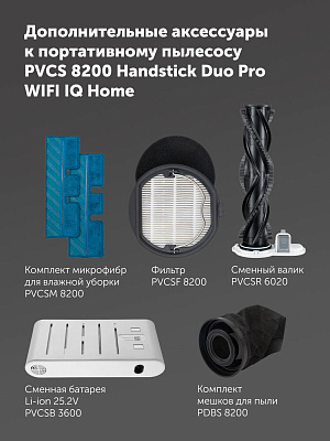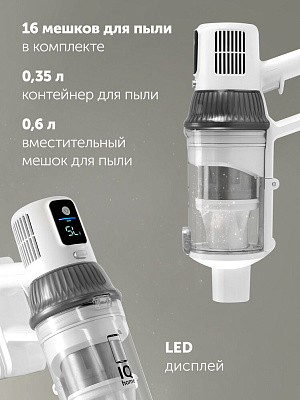 | Комплектация | пылесос, подставка, батарея к пылесосу, мини турбощетка, насадка 2 в 1, щелевая насадка с LED подсветкой, насадка для влажной уборки, сумочка для хранения и перевозки, адаптер, инструкция, гарантийный талон, мешок для пыли, 16 шт |