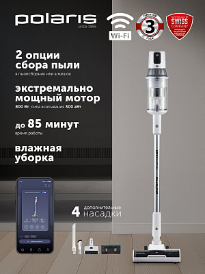 Долгого выбирал вертикальный пылесос. Рассматривал совершенно разных производителей. Но в polaris понравилось качество сборки. Остановилась на данной модели, по характеристикам один из самых мощных среди моделей фирмы Polaris, отлично держит заряд, достаточно тихий, на зарядке в 44 процента(такова было при приобретении) убрал квартиру в 66 квадратов. Очень удобная конструкция - легкий, маневренный, понравились одноразовые мешочки, так-же легко очищающийся контейнер. Особенно порадовали дополнительные насадки: можно почистить и ковёр, и мягкую мебель, и даже труднодоступные углы. Чистить коврик вообще одно удовольствие, были шокированы что после пылесоса коврик приобрёл первоначальный вид. Шерсть от питомцев убирает отлично. Так же удобен тем, что отсутствуют провода. Легко подключился к телефону по вайфаю. Товар пришел быстро, хорошо упакованный. Но видно было, что коробка до этого в скрывалась. В целом покупкой доволен, рекомендую к приобретению. По мере использования отзыв добавлю.