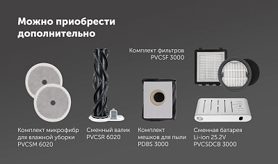 В набор входят 6 дополнительных насадок: мини-турбощетка для мебели с УФ-излучением, насадка 2в1, насадка для мебели, щелевая насадка с LED подсветкой, моторизированная швабра, электрощетка с LED подсветкой, гибкий шланг и насадка для животных, 3 шт сменных мешков. Все это позволяет чистить не только полы, но и мебель, диван, ковры, шторы, а также поддерживать чистоту в салоне автомобиля.