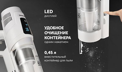 Универсальный аккумуляторный пылесос также оснащен LED дисплеем с удобным индикатором заряда, чтобы вы всегда знали, когда устройство нуждается в подзарядке. Уровень шума составляет всего 84 дБ.